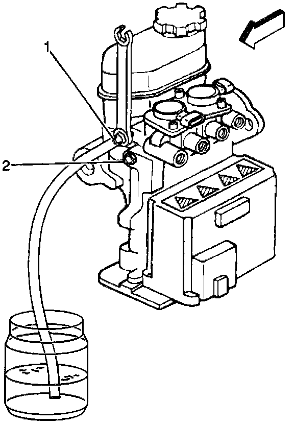 13. Install the clear plastic bleeder hose to the ABS modulator RIGHT FRONT bleeder valve (2).