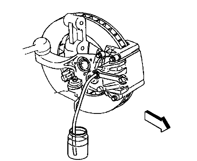 9. Submerge the opposite end of the clear plastic bleeder hose in a clean container partially filled with clean brake fluid.