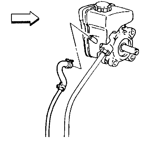 7. Remove the inlet hose from the power steering pump.