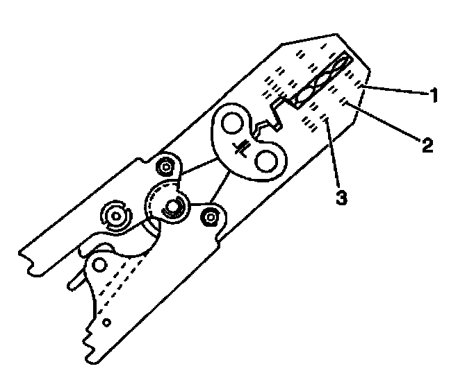6. Place the splice sleeve in the nest. Ensure that the crimp falls midway between the end of the barrel and the stop. The sleeve has a stop (3) in the middle of the barrel (2) in order to prevent the wire (1) from going further. Close the hand crimper handles slightly in order to firmly hold the splice sleeve in the proper nest.