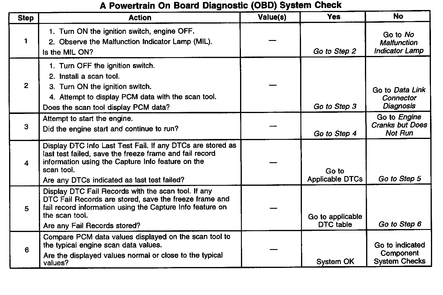 The Powertrain On-Board Diagnostic System Check is an organized approach to identifying a problem created by an electronic engine control system malfunction.