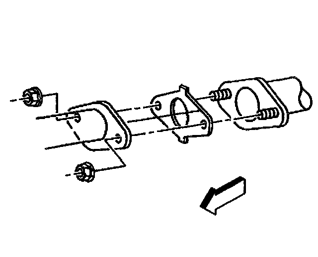 4. Install the exhaust pipe to the three-way catalytic converter with the catalytic converter nuts. Do not tighten the nuts.