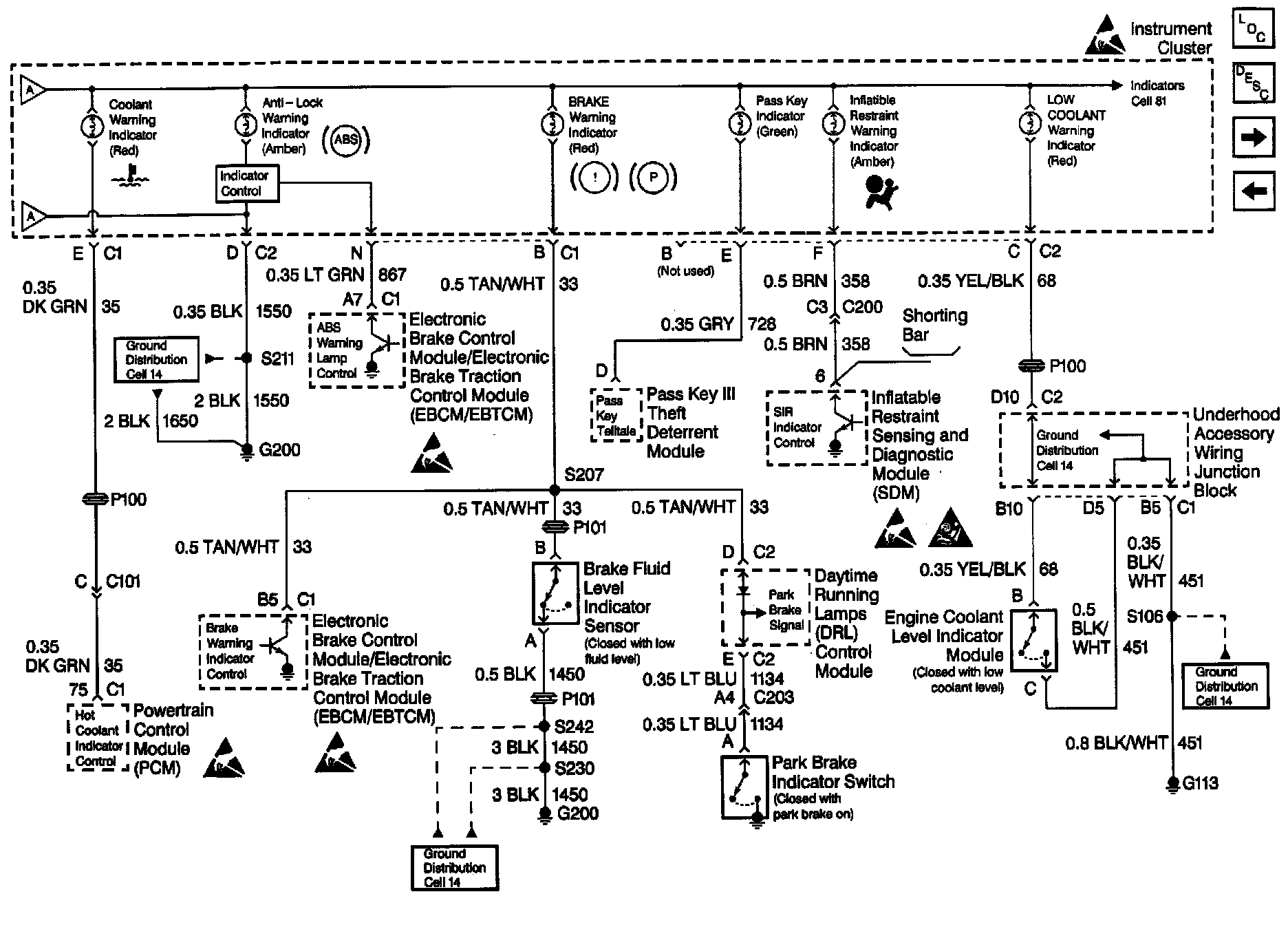 Instrument Cluster: Analog Schematics: Inflatable Restraint Sensing And SDM: