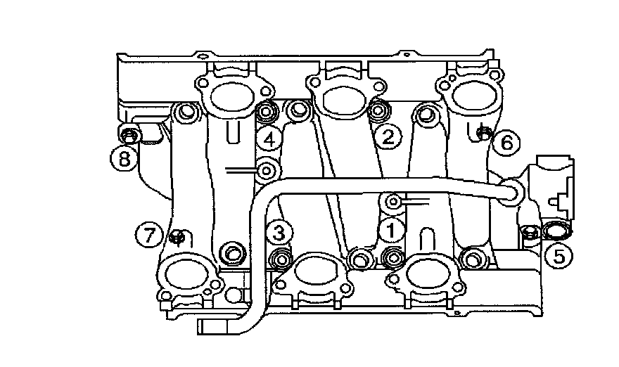 The torque specification is a 2-step process; tighten the vertical lower intake manifold bolts (the four middle ones) to 7 Nm (62 lb in). Tighten the diagonal lower intake manifold bolts (two on each end) to 7 Nm (62 lb in). Tighten the vertical lower intake manifold bolts (the four middle ones) to 13 Nm (115 lb in). Tighten the diagonal lower intake manifold bolts (two on each end) to 25 Nm (18 lb ft).