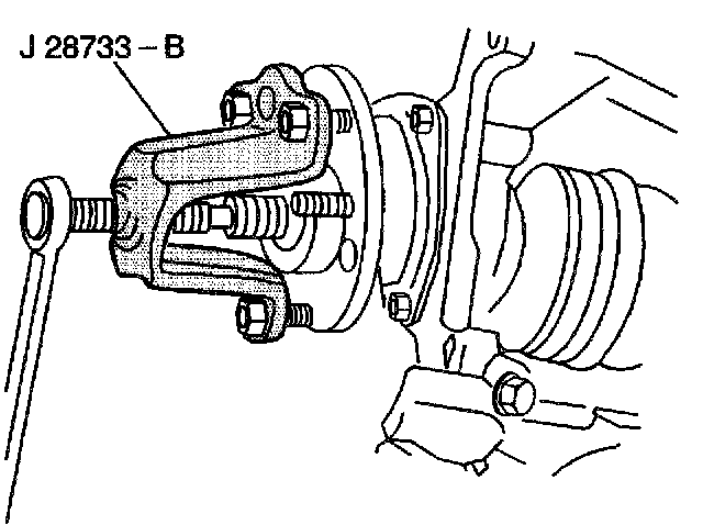 8. Use the J 28733-B in order to remove the drive axle from the wheel bearing/hub.