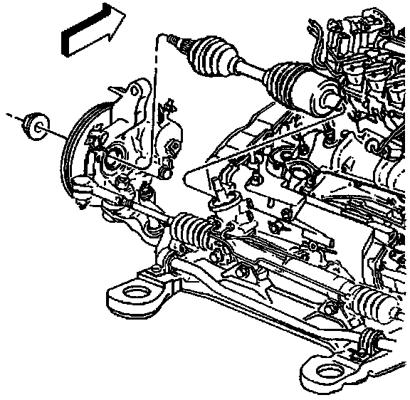 4. Remove the tie rod end from the steering knuckle. Refer to Tie Rod End Replacement - Outer - On Vehicle in Steering and Suspension.