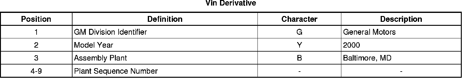 All engines and transmissions are stamped or laser etched with a partial Vehicle Identification Number (VIN), which was derived from the complete VIN. A VIN derivative contains the following nine positions: