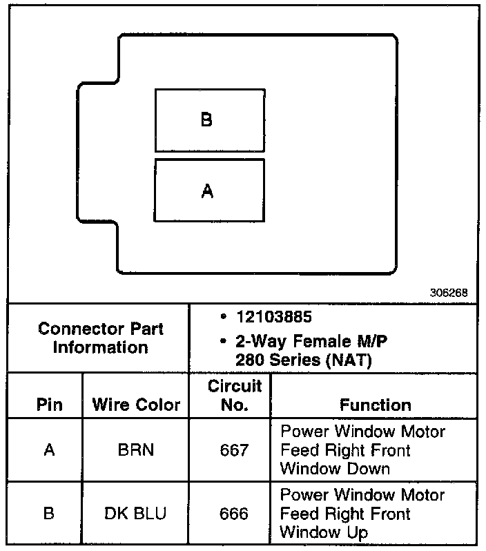 Power Window Motor RH Front Connector: