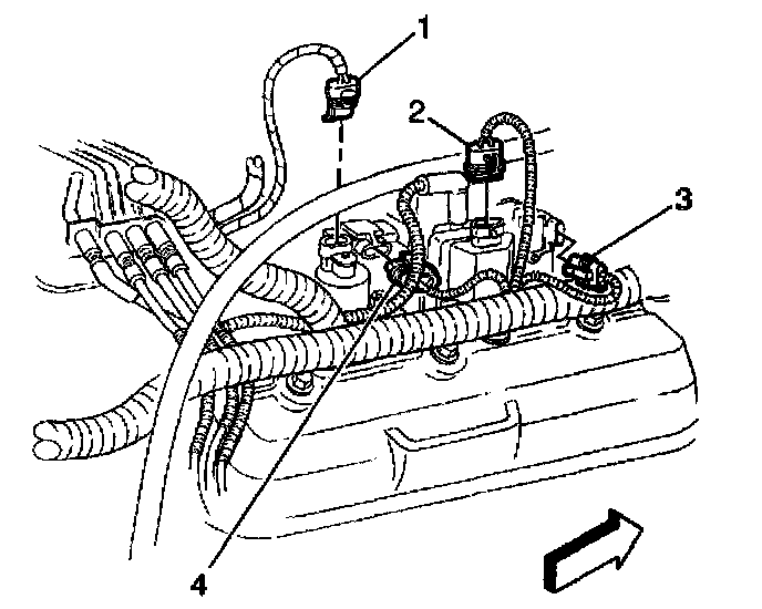 10. Install the fuel lines to the fuel meter body assembly. Refer to Fuel Hose/Pipes Replacement (Engine Compartment) in Powertrain Management.