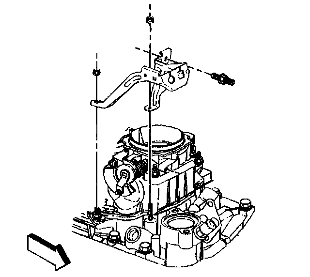14. Install the transmission fluid fill tube and bolt to the accelerator control cable bracket.