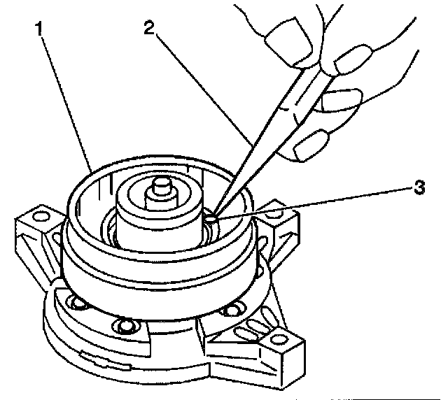 11. With the compressor mounted to the J 41790, position the pulley rotor (1) and bearing assembly on the front head.