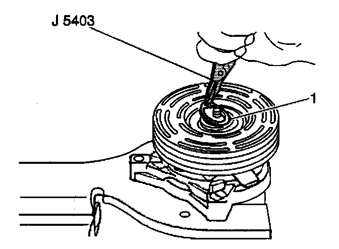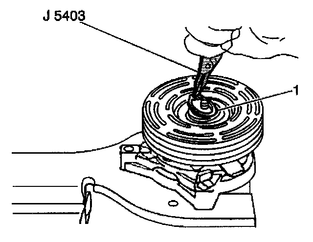 10. Remove and discard the seal seat O-ring (1) from the compressor neck using the J 9553-01.