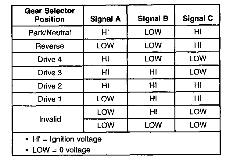 Trans Fluid Pressure (TFP) Manual Valve Position Switch Logic
