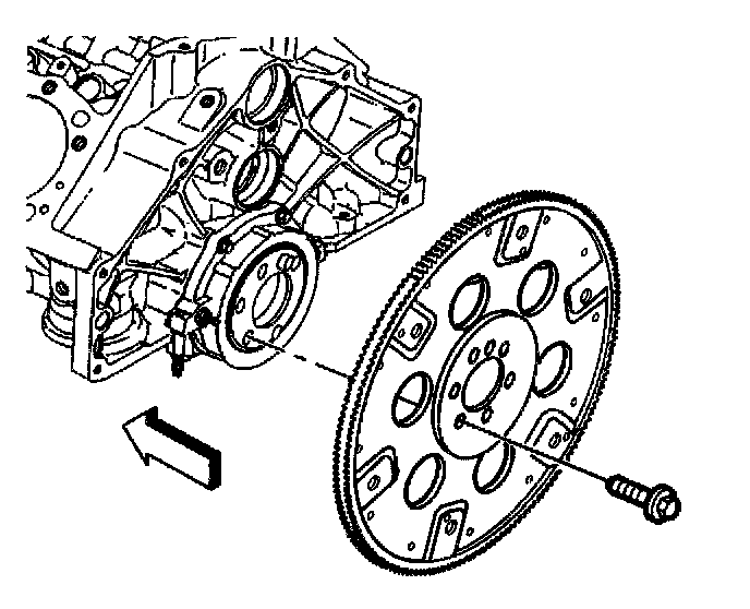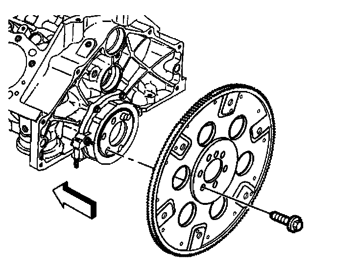 Tighten the engine flywheel bolts in sequence to 100 Nm (74 ft. lbs.).