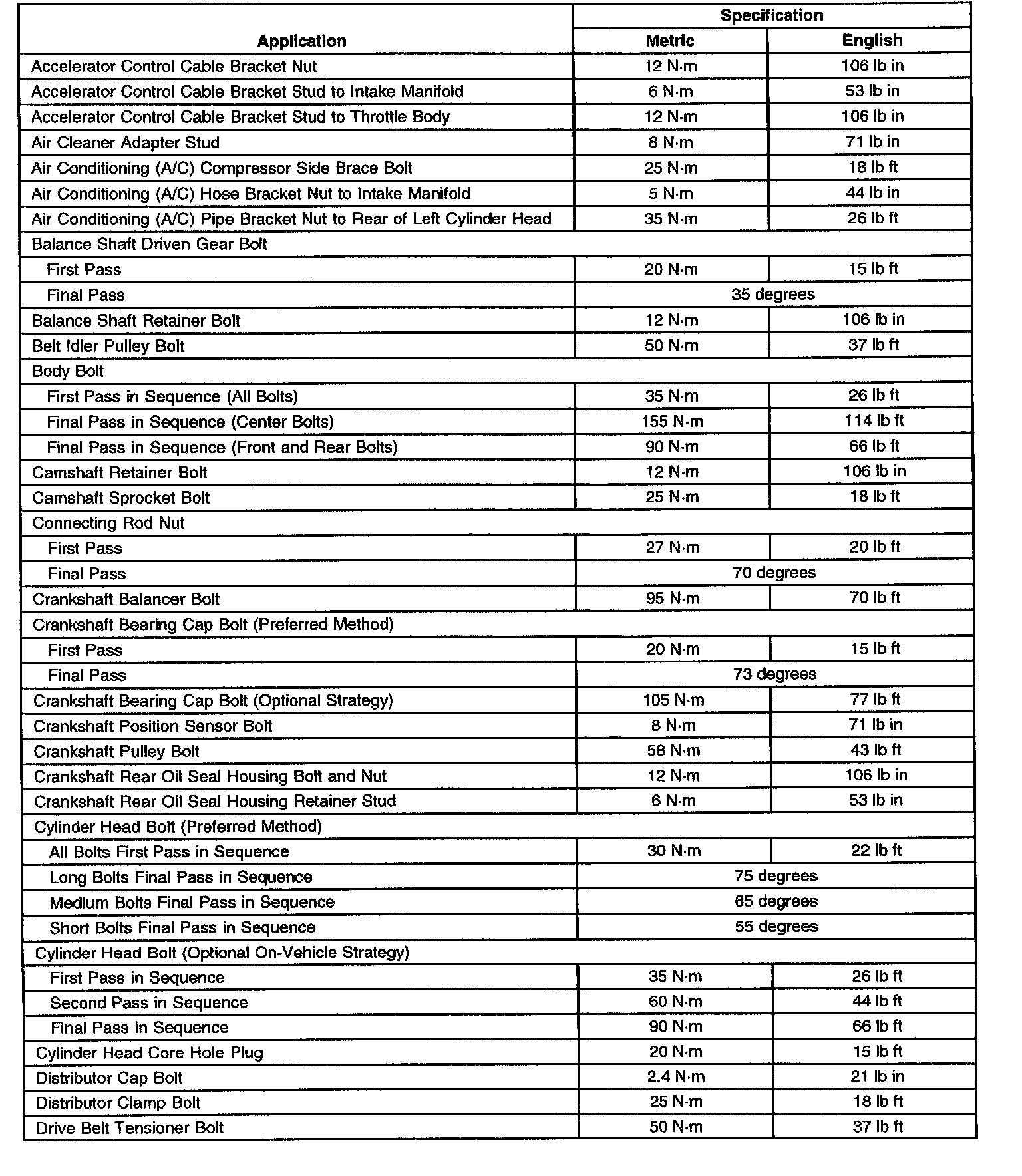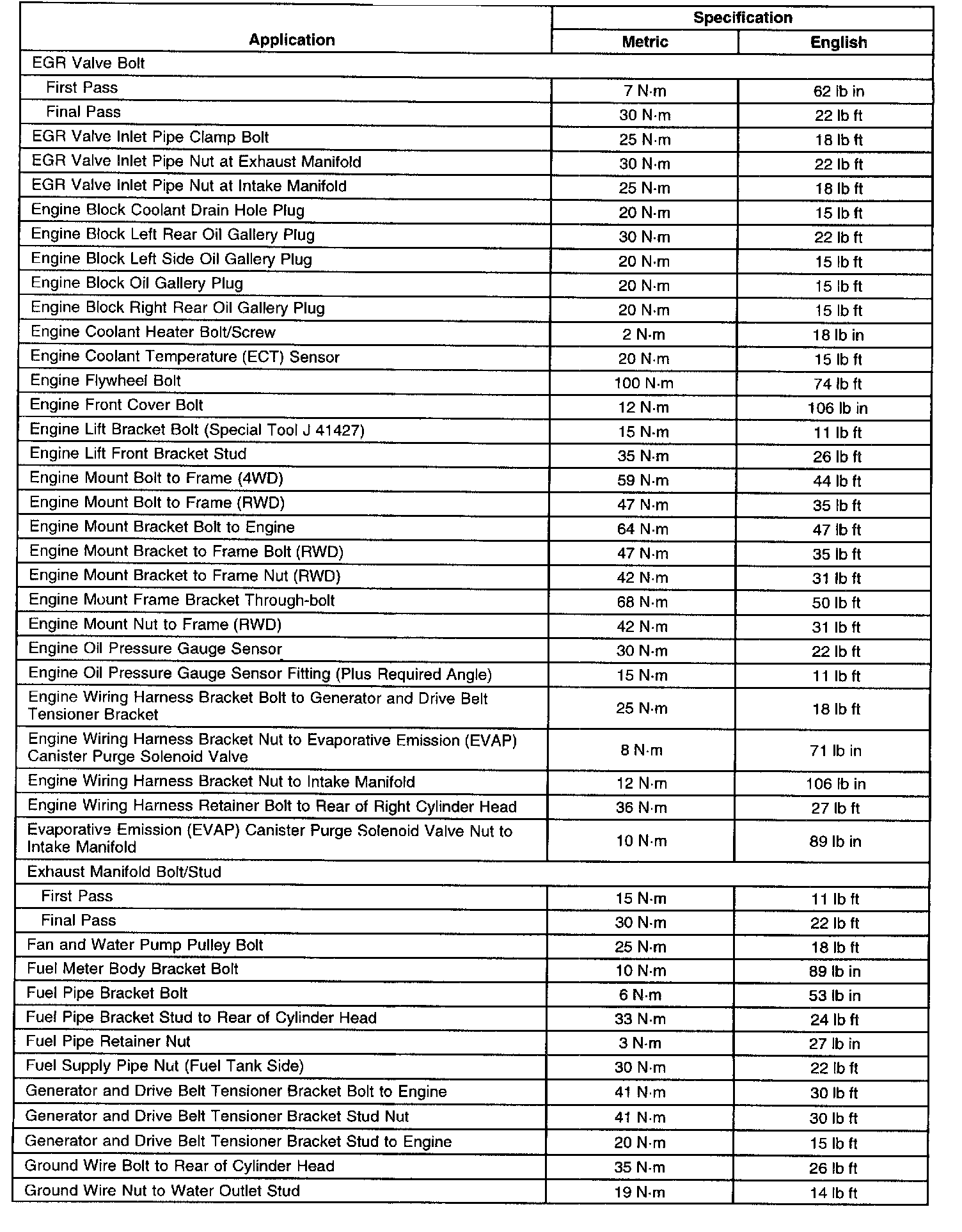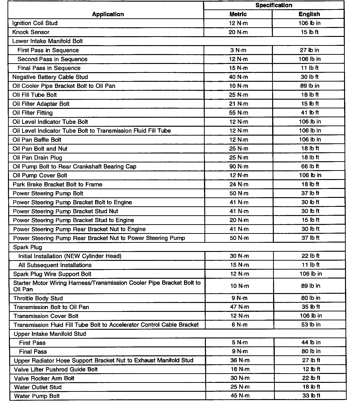 Fastener Tightening Specifications