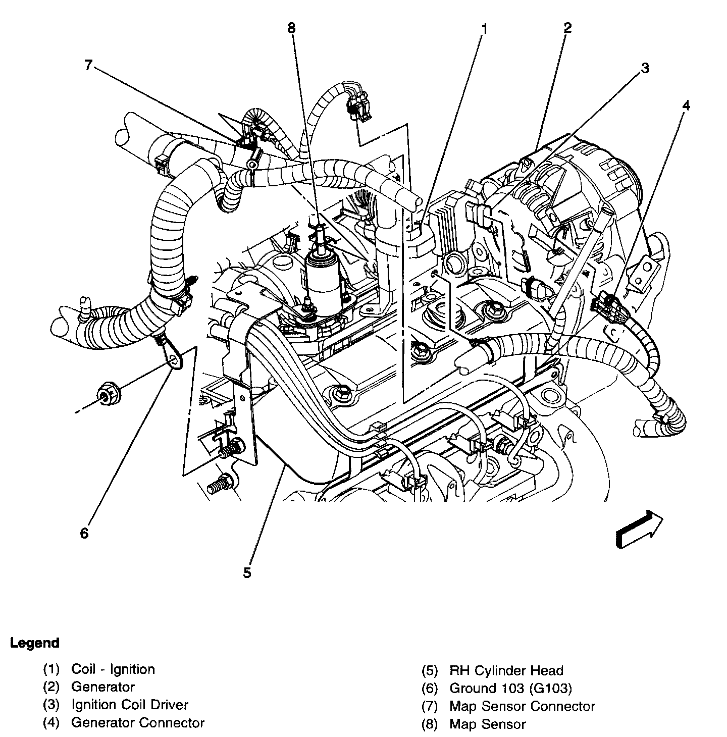 On the right front of the engine