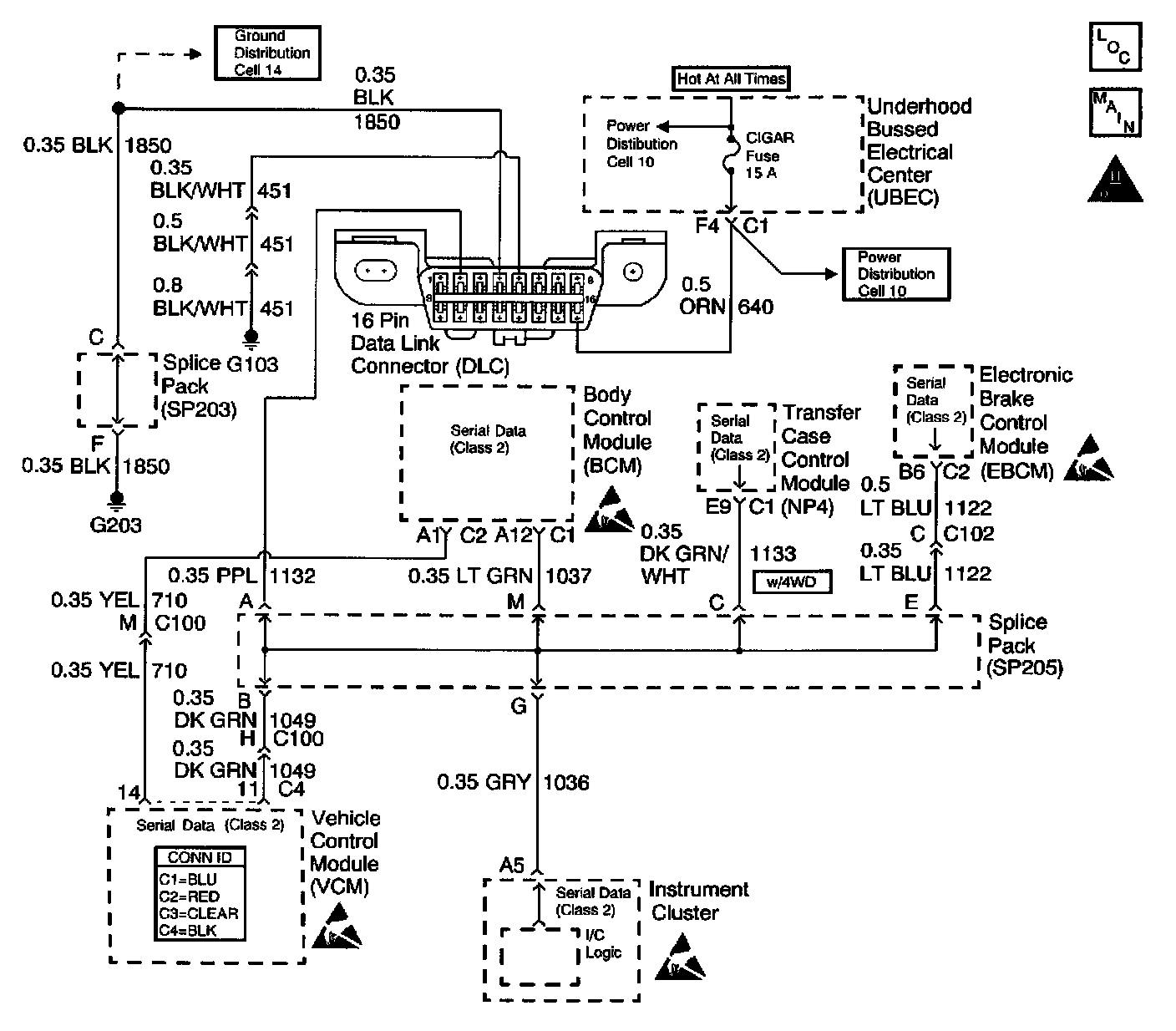 7. This step isolates the VCM by disconnecting all the other components on the Class 2 Serial Data Circuit. If VCM Class 2 Serial Data exists after disconnecting all other components on the Class 2 Serial Data circuit, then refer to Data Link Connector (DLC) Schematics in Data Link Connectors.