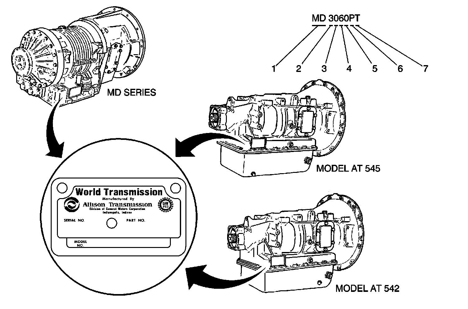 Allison(R) transmission identification plates are located on the rear left side of the housing, just above the oil pan.