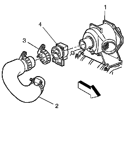 2. Loosen the clamp on the air cleaner assembly (1) to the MAF sensor (4).
