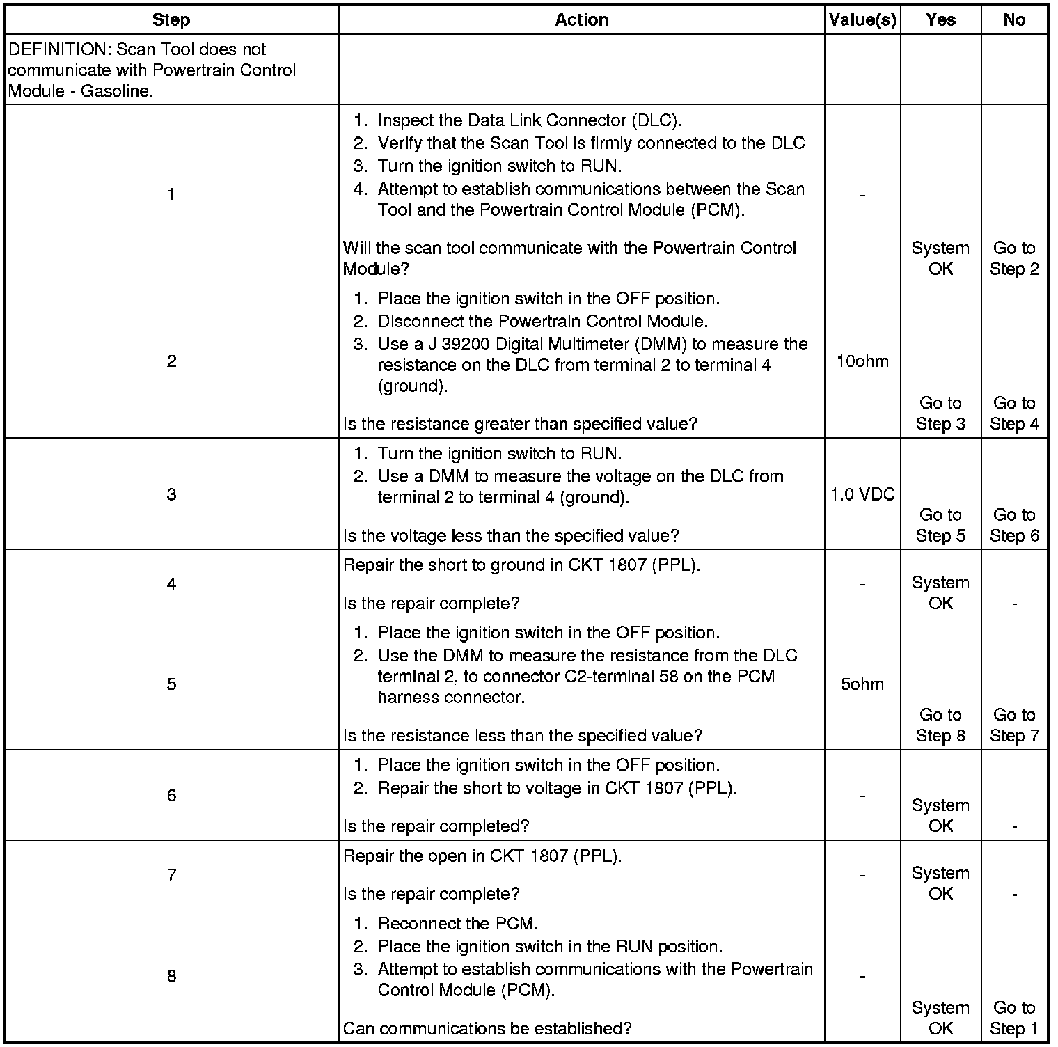 Scan Tool Does Not Communicate with Vehicle Control Module/Powertrain Control Module (Gasoline)
