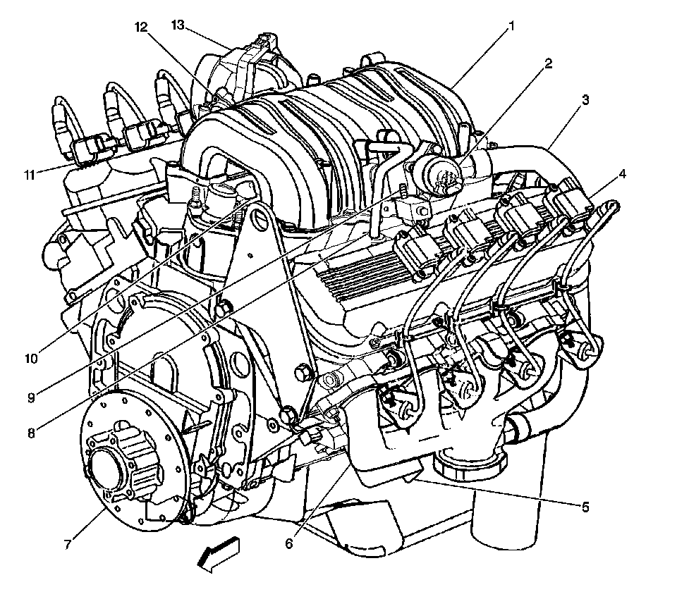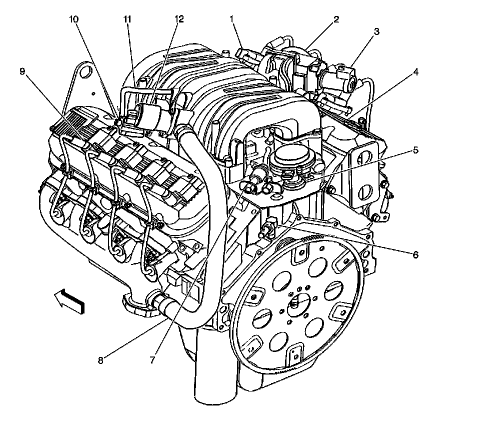 4 - Engine Coolant Temperature Sensor (ECT Sensor Location, Center of Bank 2 Cylinder Head)