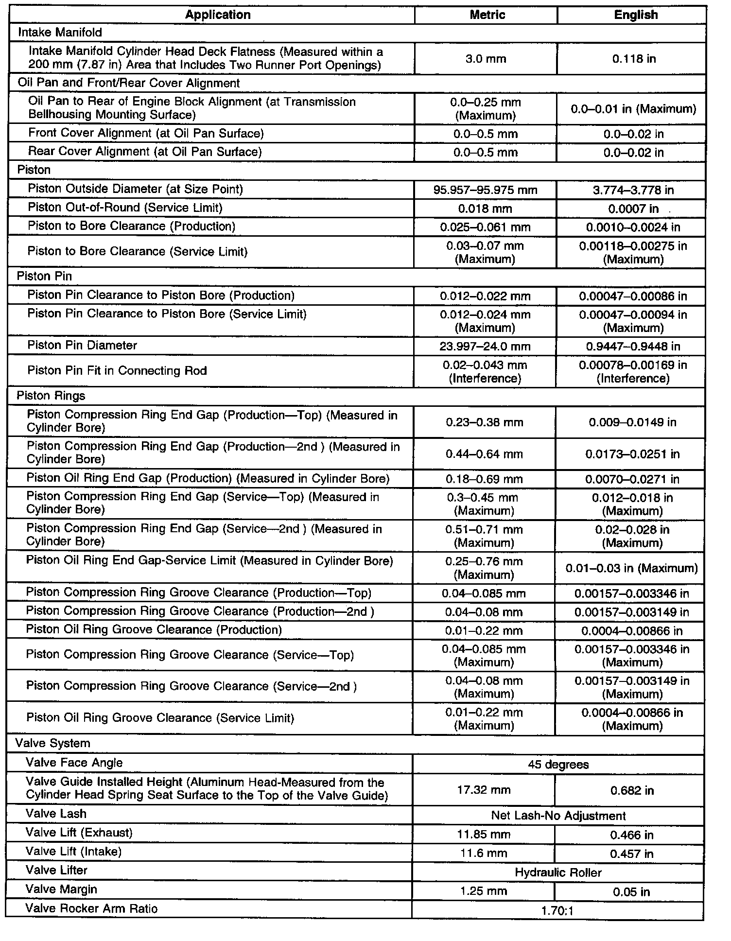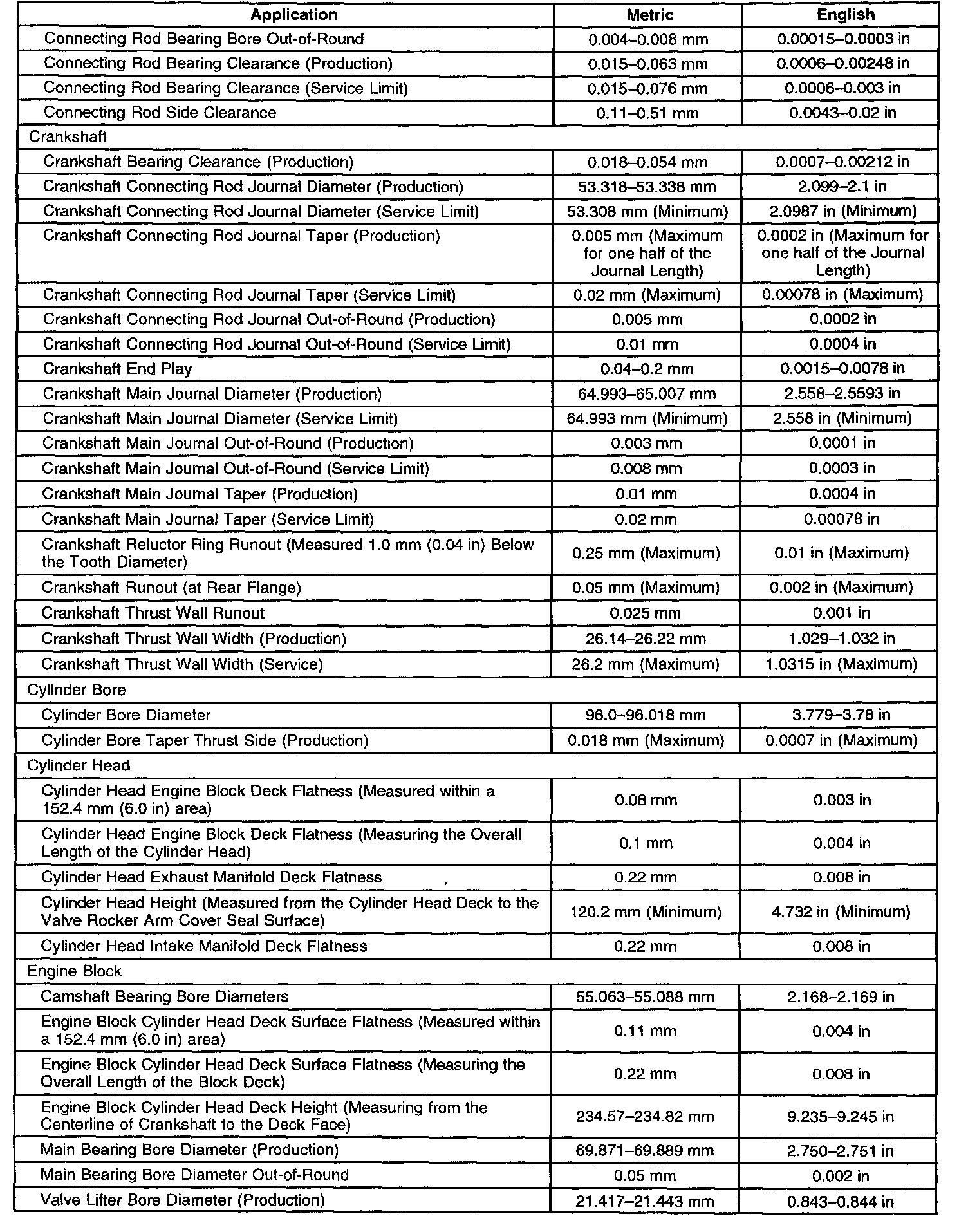 Engine Mechanical Specifications