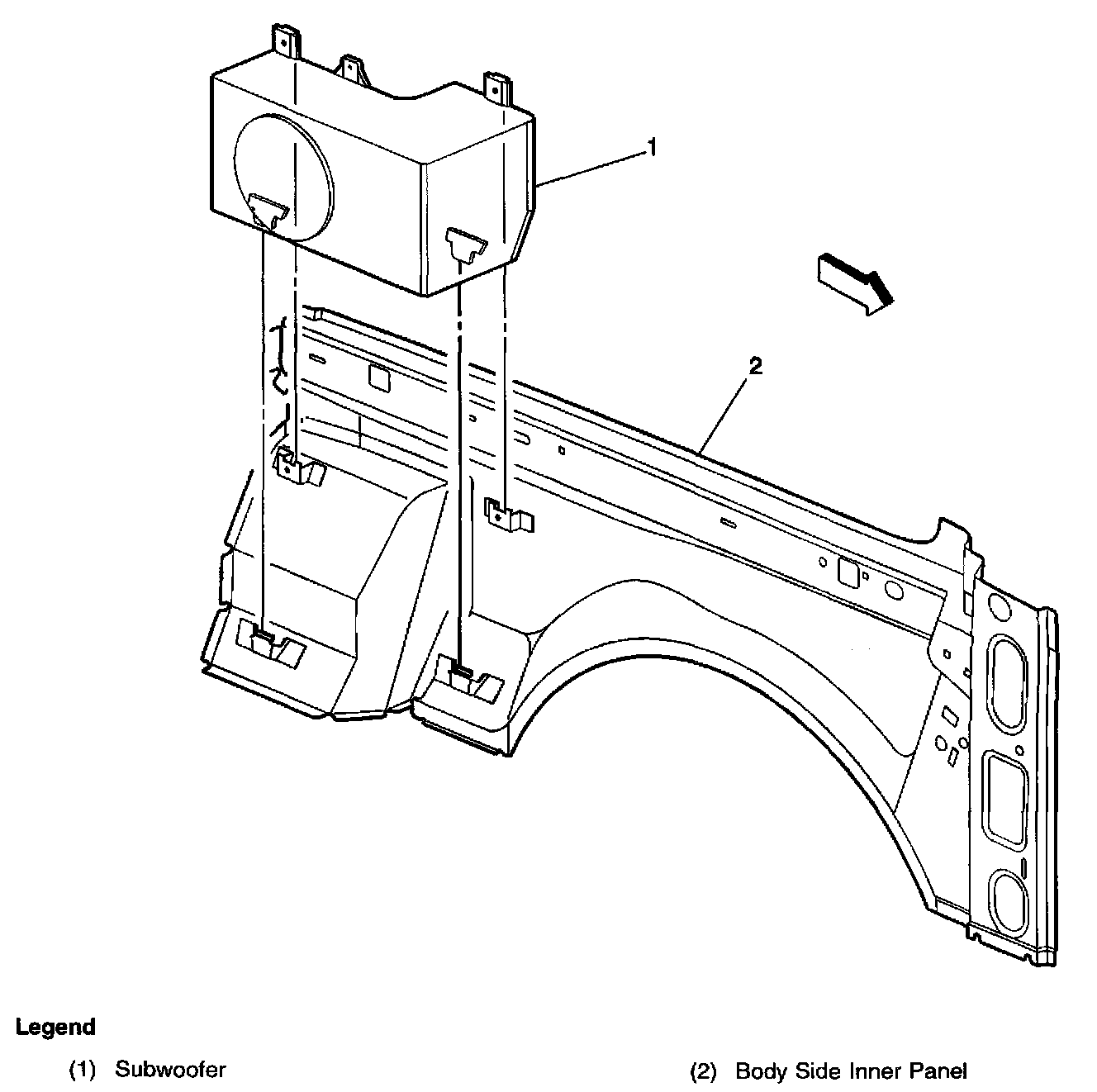 In the right rear of vehicle on the side panel
