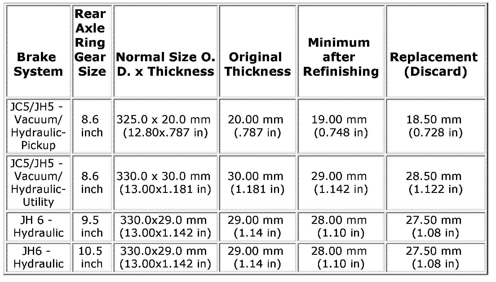 JC5/JH5 - Brake System (6100 - 7200 # GVWR) 4 Wheel Disc Brakes (Gasoline - Vacuu, Type Booster)