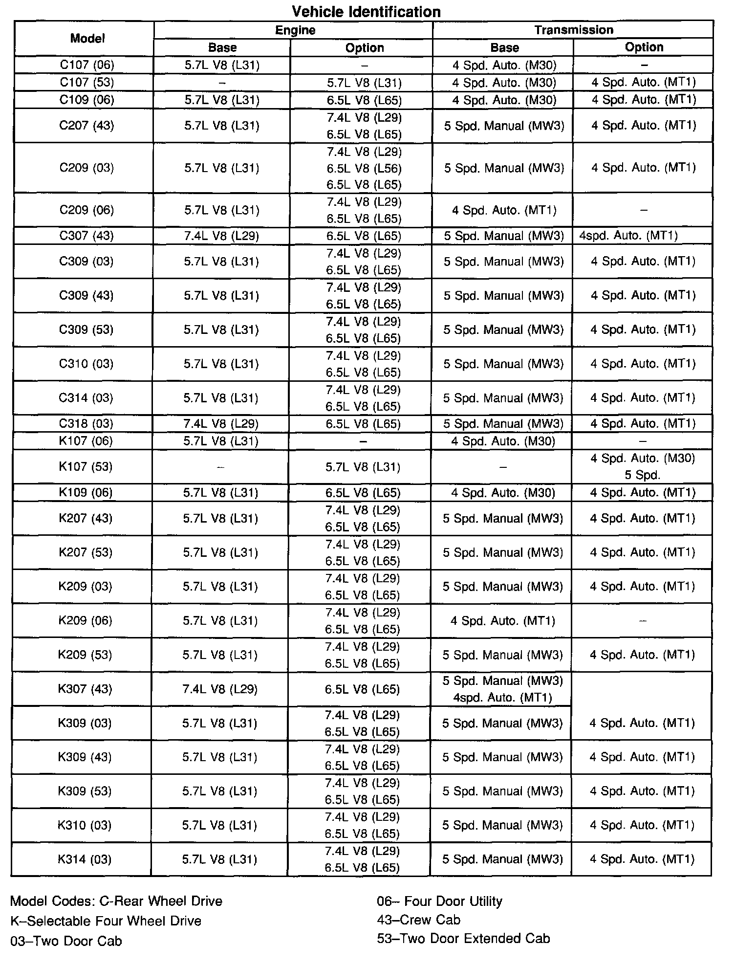 C Tahoe 2WD V8-5.7L VIN R