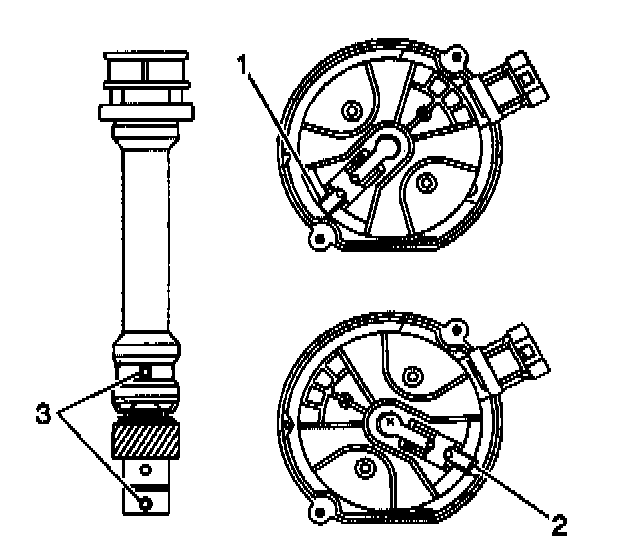 NOTE: The OBD II ignition system distributor driven gear and rotor may be installed in multiple positions. In order to avoid mistakes, mark the distributor on the following components in order to ensure the same mounting position upon reassembly: