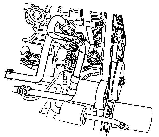 NOTE: Remove the heater hose quick connect fittings by hand. Do not attempt to pry the quick connect fittings from the drive belt tensioner. Prying the quick connect fittings may damage the quick connect fittings.