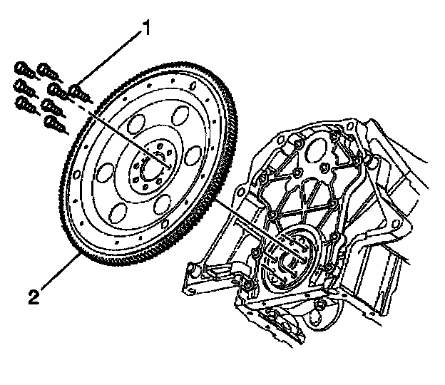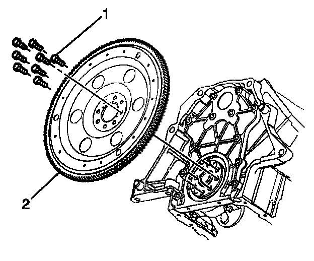 1.2. Install the flywheel bolts (1) finger tight.