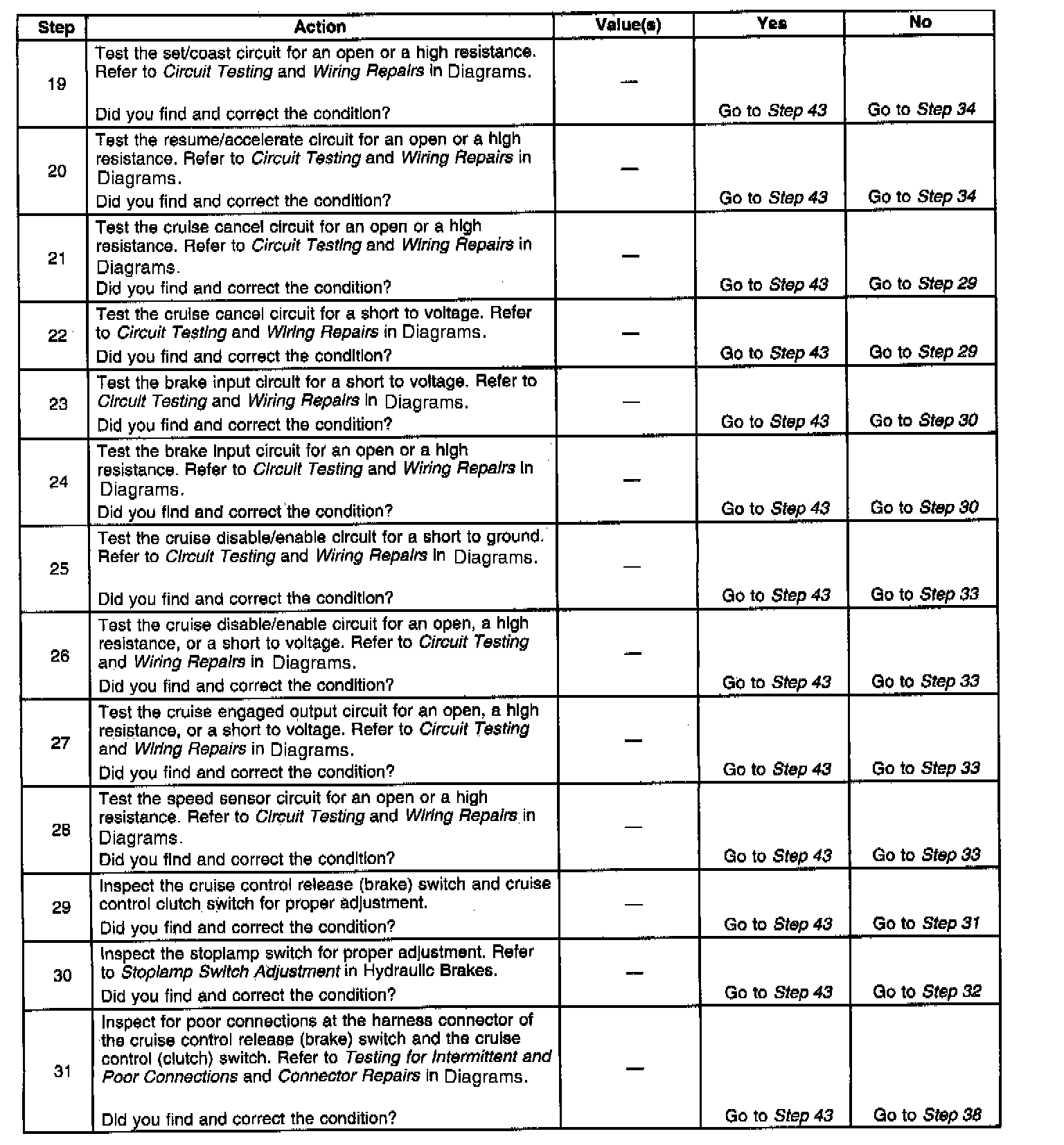 The J 42958 Cruise Control Tester may be used if desired. See Service Bulletin 8-90-08A or refer to Cruise Control inoperative/Malfunctioning Using J 42958 Cruise Control Tester