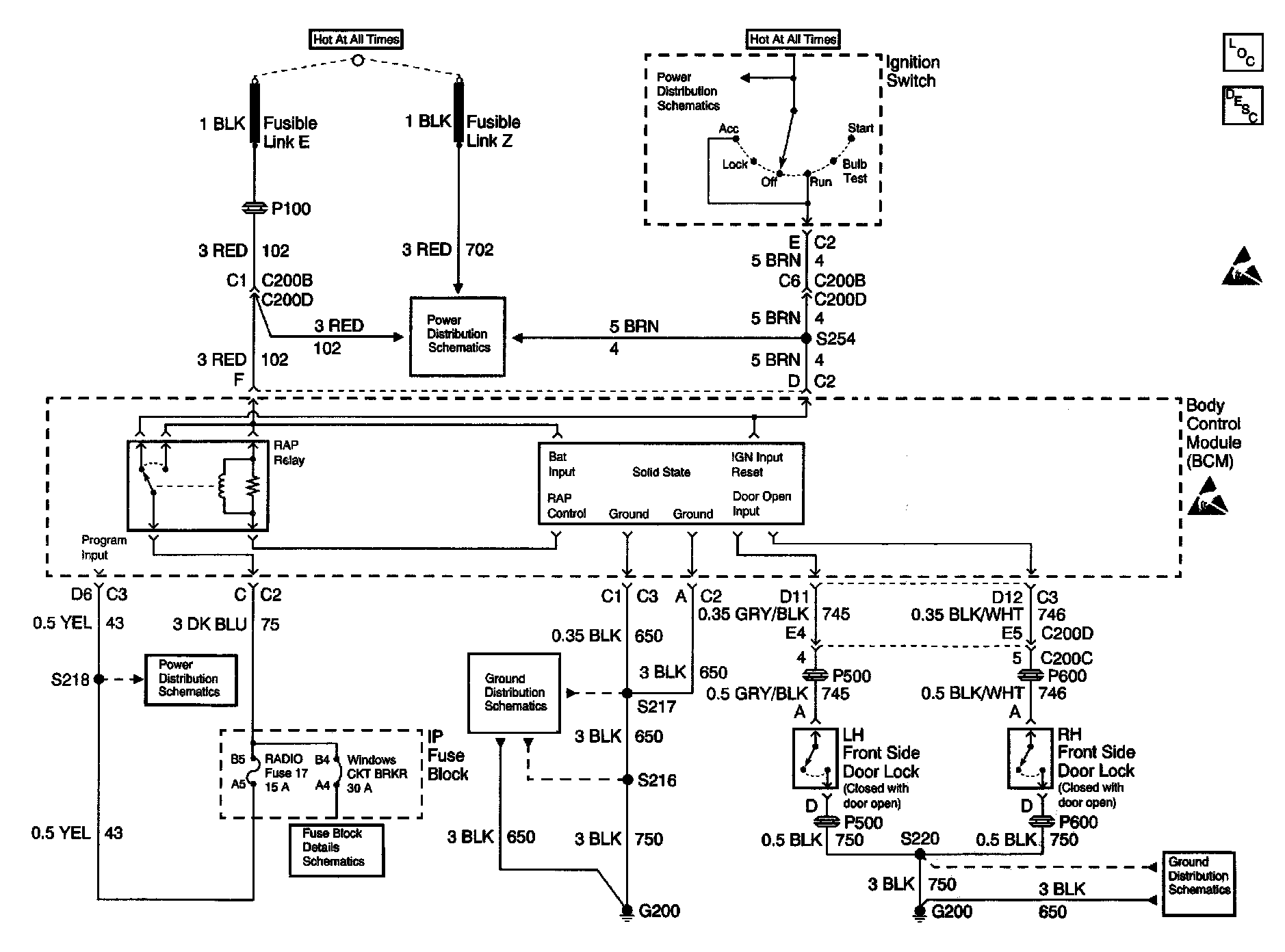 Retained Accessory Power (RAP) Schematics: Body Control And Front Side Door Lock Switches: