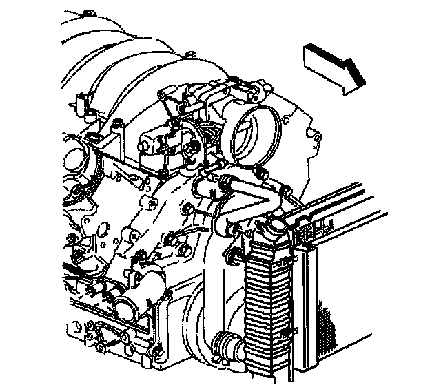 15. Install the throttle body heater hose to the radiator.
