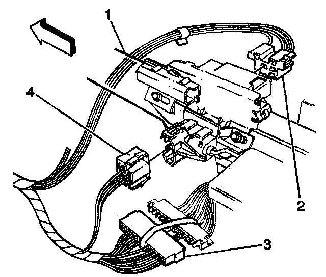 42. Connect the headlamp jumper harness (2) to the forward lamp harness (1).