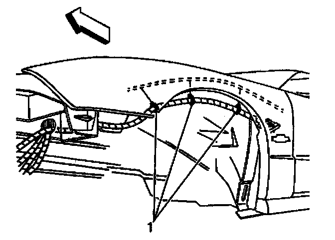 44. On Pontiac, install the clip (3) to the front bumper beam.