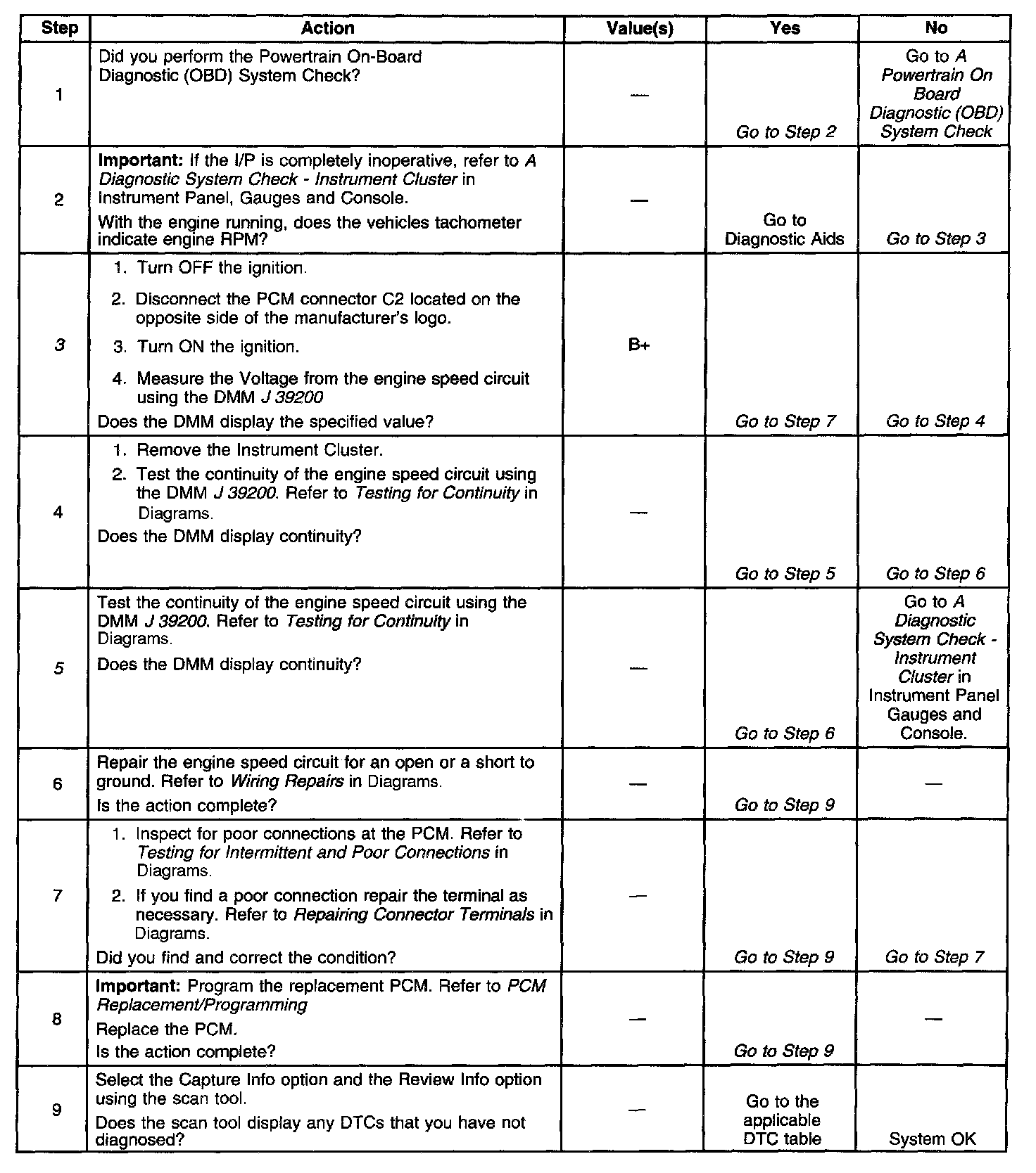 Engine Speed Output Circuit Diagnosis