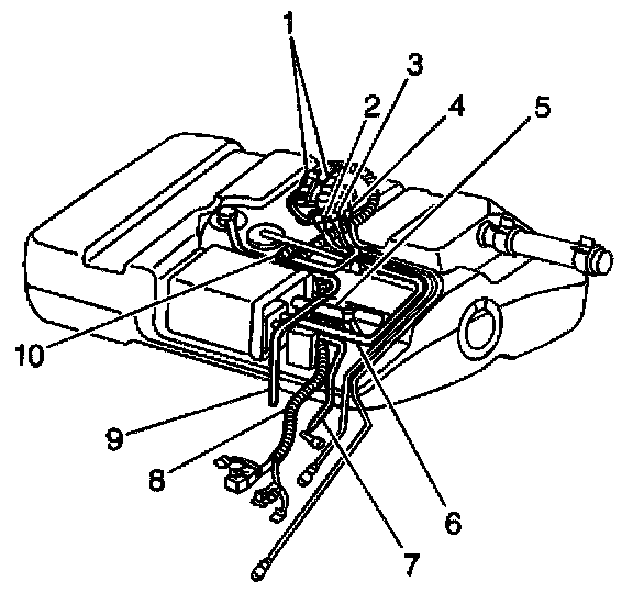 NOTE: Do not submerge the fuel tank assembly in water in order to check for leaks in the fuel tank. Submerging the fuel tank in water may damage the electrical components mounted on the fuel tank.