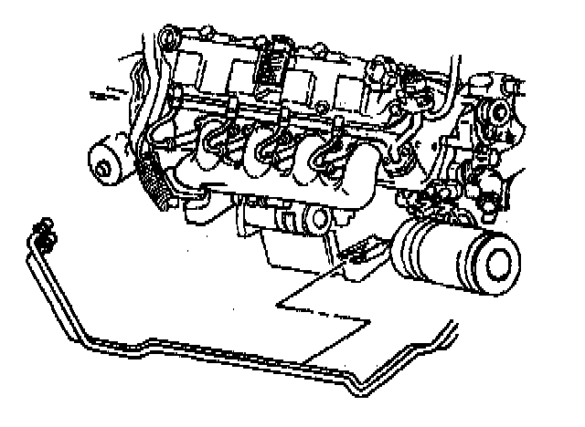 15. On the 3.8L remove the oil cooler pipes from the clip at the engine mount.