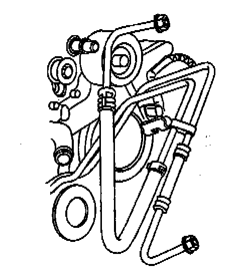 9. On the 5.7L install the oil cooler pipes to the clip at the oil pan.