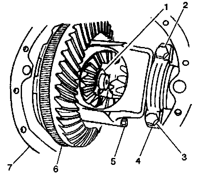 6. Remove the differential carrier bearing caps (4).
