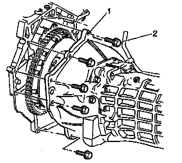 23. Remove the transmission bolts (2).