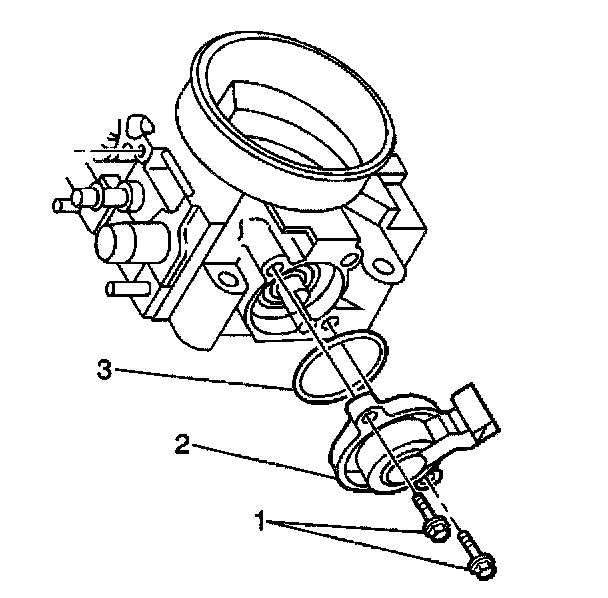 1. With the throttle valve in the normal closed (idle) position, install the throttle position sensor (2) and seal (3) on the throttle body assembly.
