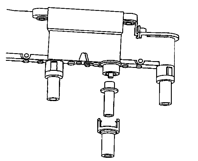 NOTE: Spark plug boots often adhere to the spark plugs. Use tool J 36011 in order to remove by first twisting and then pulling upward on retainers. Reinstall the boots and the retainers on the ignition coil housing secondary terminals. The boots and the retainers must be in place on the ignition coil housing secondary terminals prior to the ignition coil and the electronic ignition control module assembly installation or ignition control system damage may result.