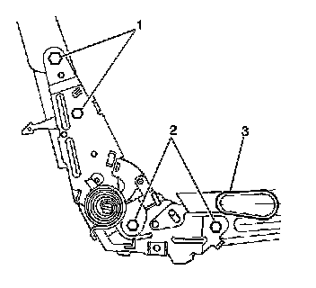 5. Lift the front seat back pad and cover as necessary in order to access the front seat recliner bolts (1).