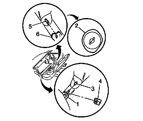 5. Engage the right key slot (3) to the right key pin (1).