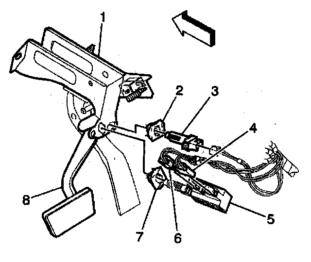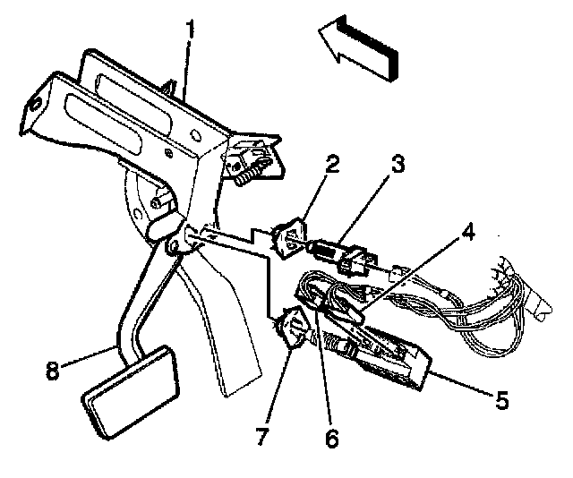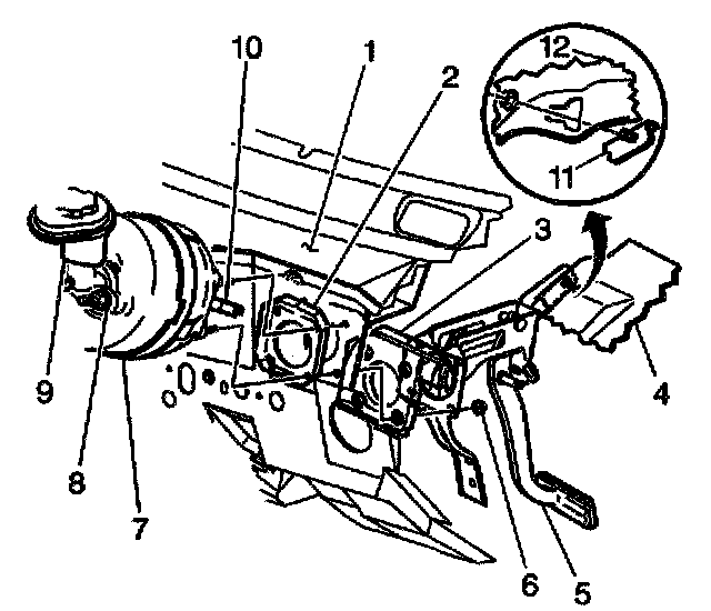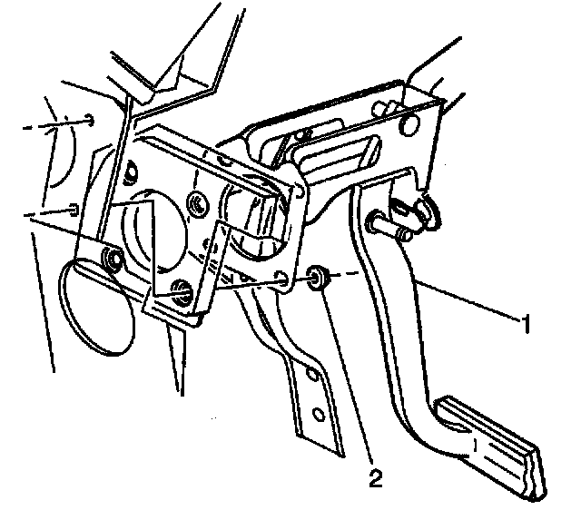 pedal assembly nuts (2) and the brake pedal assembly (1).