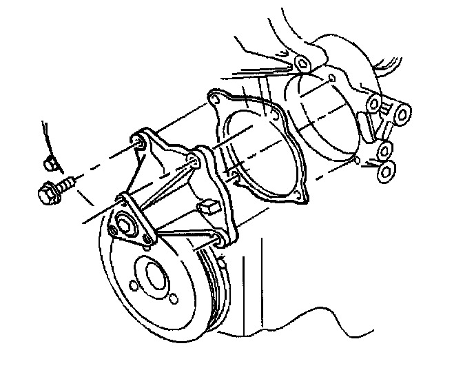 1. Using a new gasket, install the coolant pump and the attaching bolts. Coat the bolt threads with pipe sealant GM P/N 12346004, or equivalent.
