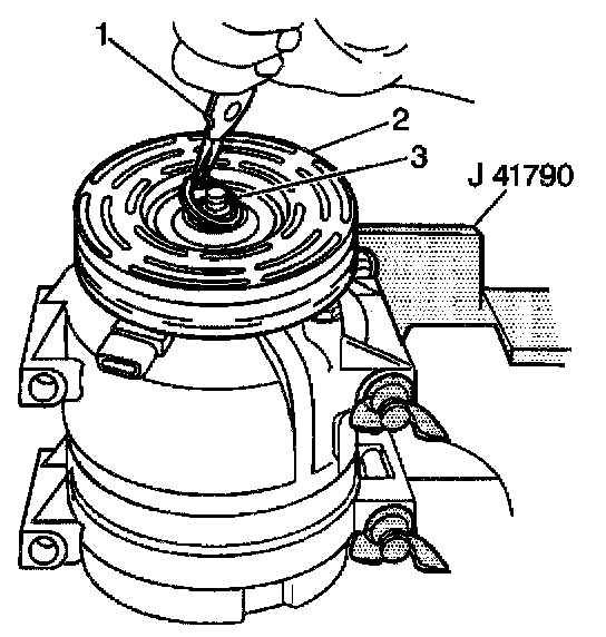 3. Remove the clutch rotor and bearing assembly retaining ring (3), using external snap ring pliers (1).